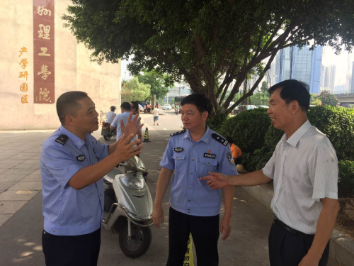 8月25日上午,丰泽交警大队副大队长谢庆平到泉州校区现场办公,副校长庄文瑞陪同检查校参与“创城”工作开展情况。一行人详细对校园基础设施建设、校园环境、宣传标语等方面进行完善,整治校区停车秩序,清理卫生死角...
