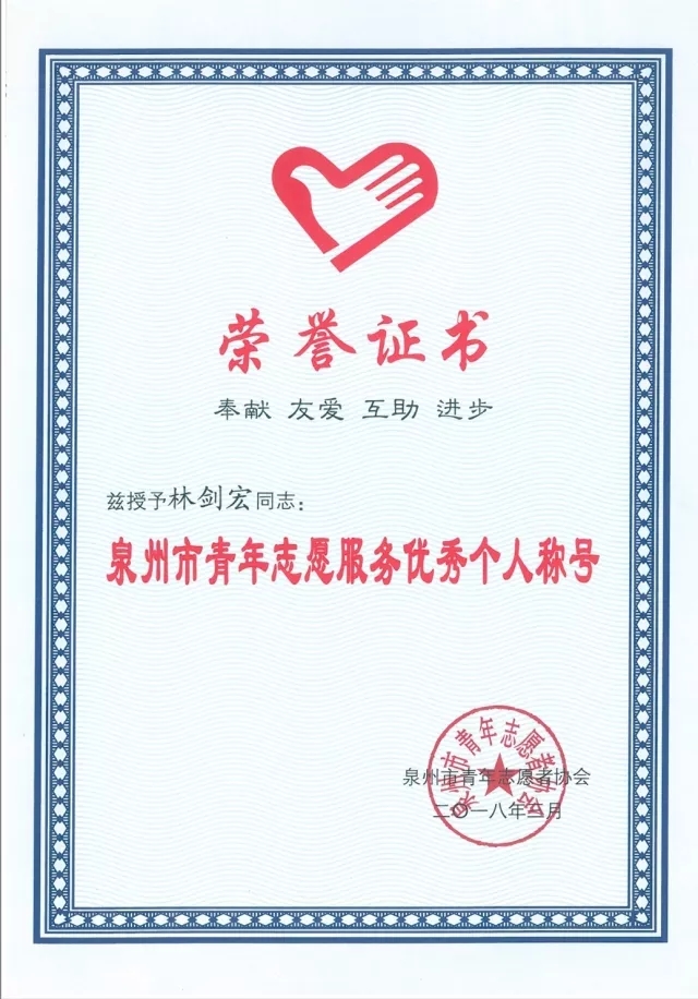 【喜讯】我校青年志愿者林剑宏荣获“泉州市青年志愿服务优秀个人”称号