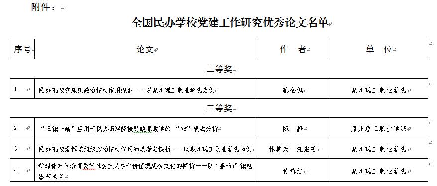 近日,由中国民办教育协会举办的全国民办高校党建工作研究论文征文活动落下帷幕,发布了《关于表彰全国民办学校党建工作研究优秀论文的通知》,我校在此次论文征集活动中取得了优异的成绩,组织报送的4篇论文均获奖。...