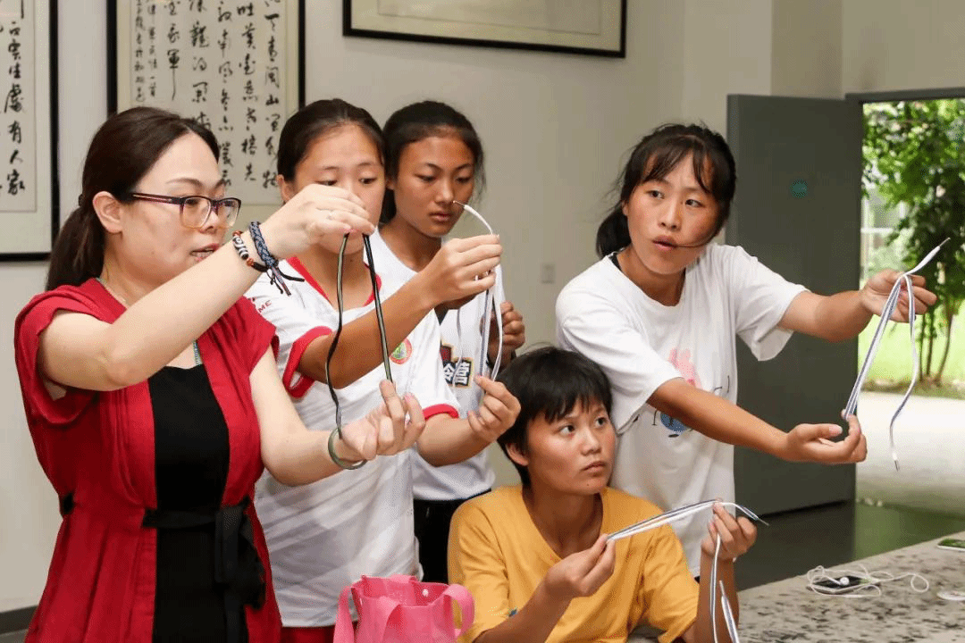 也许因为球员们都热爱运动,所以编运动手绳堪称是最热门的项目了。男生女生都围坐在一起,认真看老师演示,互相探讨,一起分享成果,现场一片其乐融融。