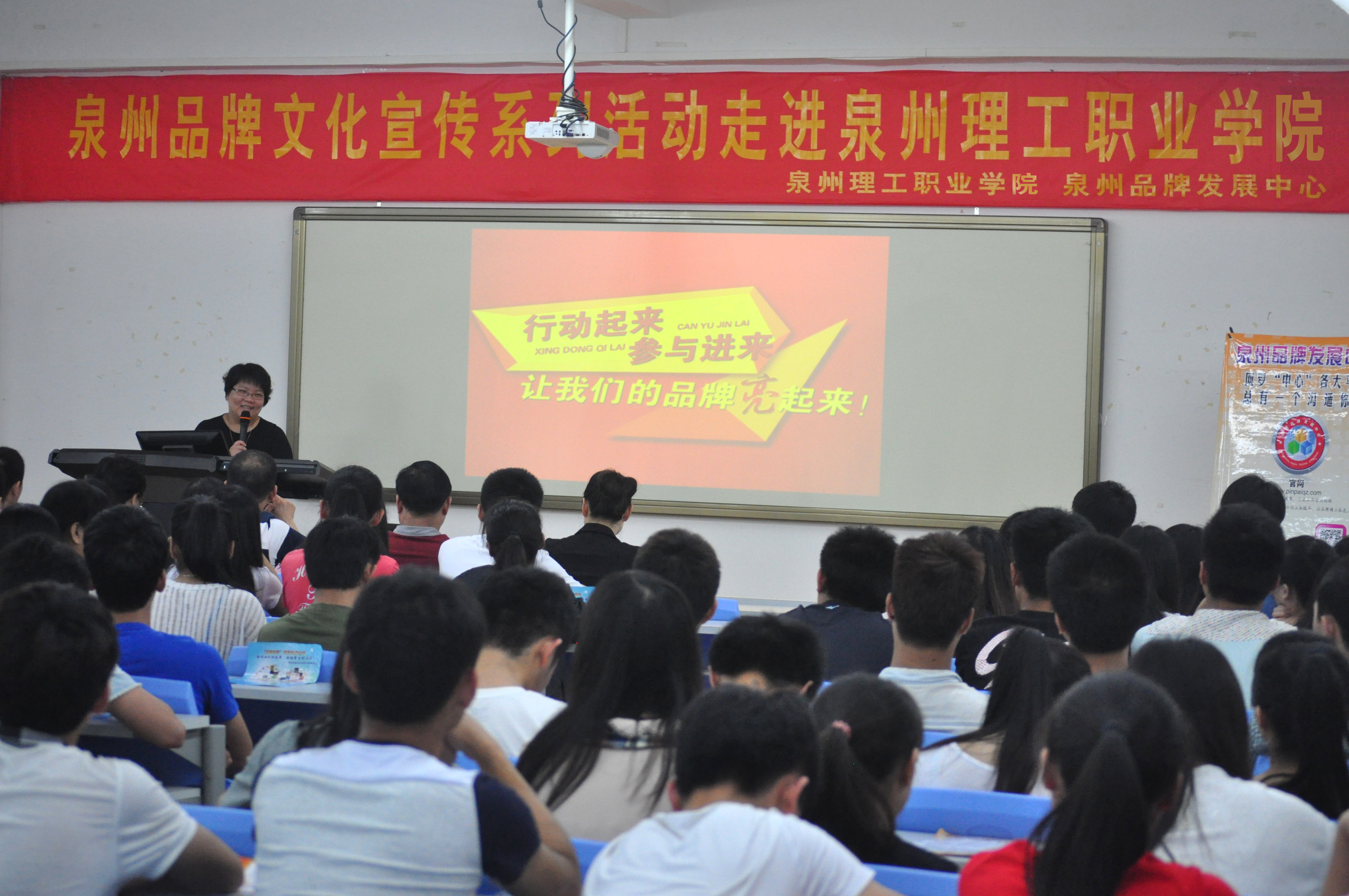 2014年5月14日,由泉州品牌发展中心与泉州理工职业学院主办的泉州品牌文化宣传系列活动走进泉州理工职业学院在东教学楼238教室举行。校副董事长吴滨如,校团委书记、学工处副处长蔡金佩,泉州品牌发展中心主任刘文镇、副主任李梅茹,匹克集团有限公司董事长许景南,泉州世界贸易中心商务总监林舒以及泉州理工职业学院200余名师生代表参加本次活动。