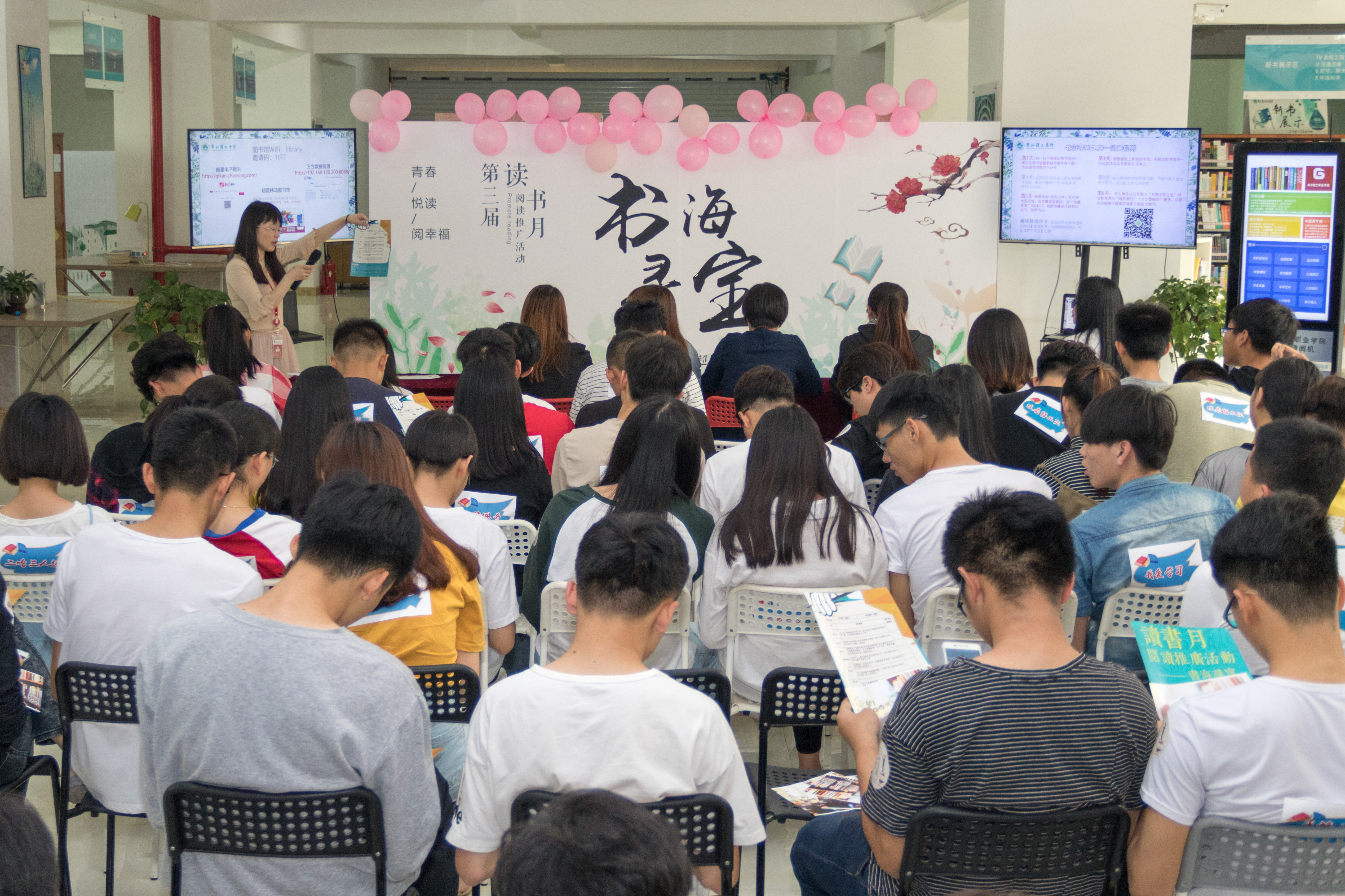 4月27日,第三届泉州理工学院图书馆“读书月阅读推广系列活动”之书海寻宝---搜索达人大闯关活动举行,共有26支参赛队伍参加。