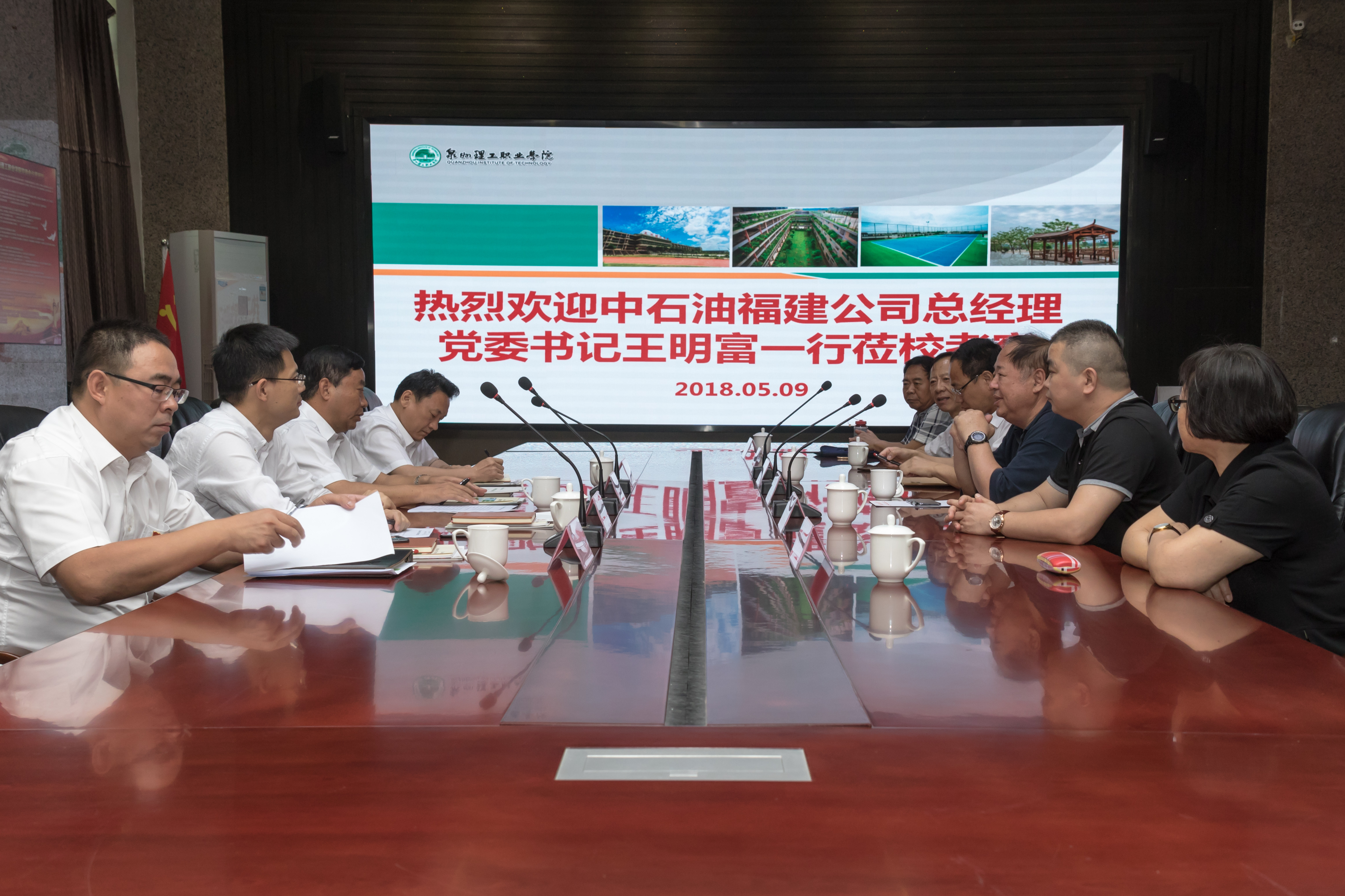 5月9日,中石油福建销售公司总经理党委书记王明富、人事处处长邹晓峰、泉州分公司总经理岂忠来到我校,进行了实地参观交流。我校校长、工学院院长陈其生、工学院党总支书记吴茶水、能源系主任王为民等陪同参观。一行人参观了校园沙盘、校史馆、油气储运、天燃气实验室和省级应用技术工程中心。在座谈会上,双方就院士工作站、新能源和学生就业等方面进行交流。校长对我校油气储运等新能源专业的建设进行详细介绍,学校重视与企业的沟通、联系,关注企业发展,希望企业支持学校人才培养,共同研究新能源产业发展,实现学校和企业共赢。王明富总经理仔细听取了介绍,对学校的专业设置、办学模式给予充分肯定,并明确表示每年提供100个以上岗位,供我校能源系学生实习就业,双方并在今后的校企合作和专业建设问题进行了详细的交流,达成了深度合作意向。