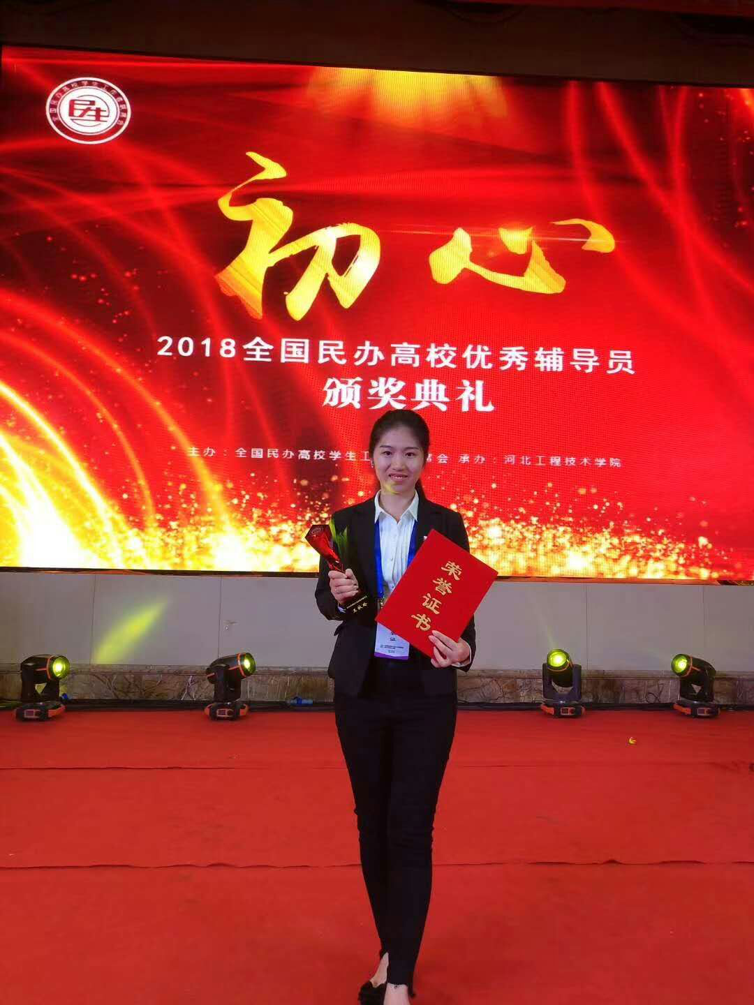 2018年5月10日至13日,第四届全国民办高校辅导员工作高峰论坛在河北石家庄举行。本次论坛同时举行了第三届全国民办高校优秀辅导员颁奖典礼和第一届全国民办高校班级管理创新奖成果发布会。我校建筑设计系辅导员王秋玲老师代表我校参加了本次论坛,并荣获“第三届全国民办高校优秀辅导员”称号。