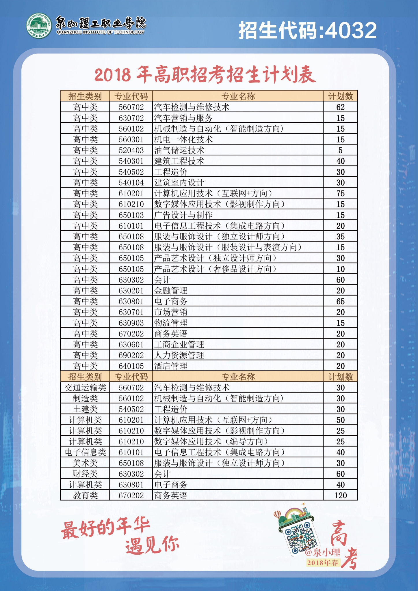 泉州理工职业学院2018年高职招考招生面向高中类招生687人,面向中职类招生480人。