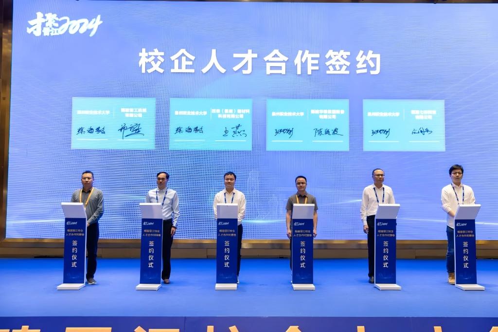 本次对接会上,我校艺术传媒学院与福建柒牌时装科技股份有限公司进行校企合作授牌仪式,工学院、人居环境学院分别与福建晋工机械有限公司、茂泰(福建)新材料科技有限公司、福建华泰集团股份有限公司、福建七彩陶瓷有限公司等4家知名企业进行现场签约,在人才引进与培养、校企合作、产教融合、实习就业等方面全面深化合作,努力培养和造就更多优秀人才。