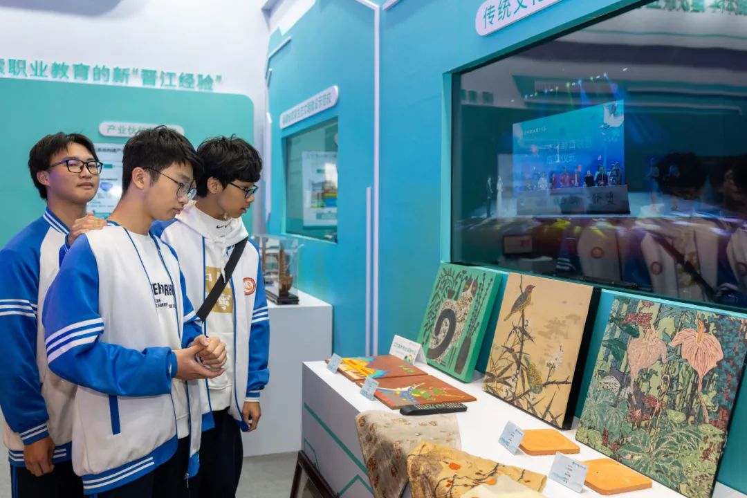 我校展区集中展现学校近年来发展建设成果,采用实物、图文、视频等多种形式相结合的展示方式,全方位、立体地展示学校“产业伙伴型大学”、晋江市域产教联合体(国家级)、生态校园、非遗技艺传承等方面的建设成果。众多领导、嘉宾、展商在我校展区驻足参观交流,对我校取得的办学成效给予肯定。