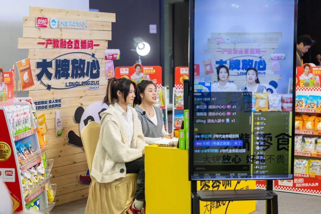 ▲ 由晋江市域产教联合体牵头高校泉州职业技术大学、牵头企业盼盼食品共同打造的产教融合直播间,带大家沉浸式体验“直播带货”