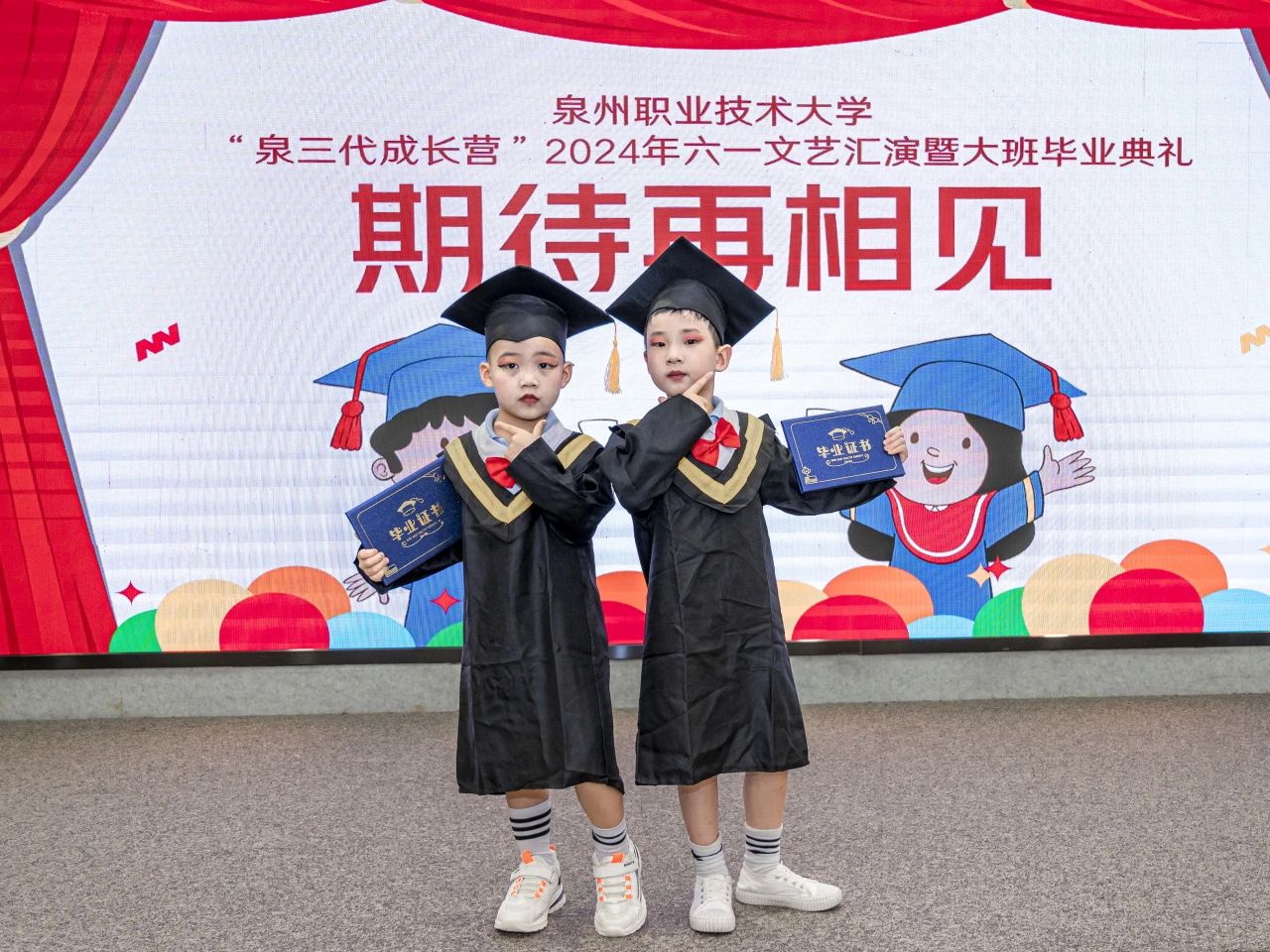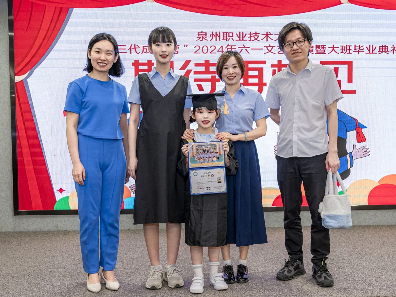 5月30日,泉三代成长营2024年六一文艺汇演暨大班毕业典礼举行。这场活动不仅是为了庆祝六一国际儿童节,这还是成长营大班小朋友们人生中第一个毕业典礼。活动中,孩子们化身小小歌唱家、舞蹈家、画家,用他们清脆的歌声、优雅的舞步和绚丽的画笔,献上一场充满“闽南味”的文艺表演。出席活动的有我校工会主席陈其生、副主席朱冰梅,教育学院院长张君,泉三代成长营负责人欧阳默涵,以及成长营小朋友与家长。