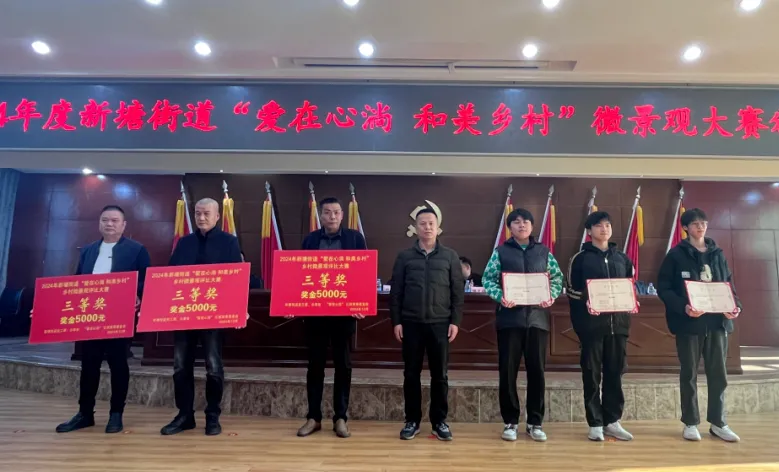 沿着新塘街道的乡间小道前行,以华侨文化、和谐邻里、军民团结、清风正气、乡愁记忆和福文化等为特色的主题微景观,移步换景,妙趣横生,凝练着当地人祖辈的精神赓续,彰显着乡村的文明底蕴,整体服务和建设成效得到了地方领导和当地民众的一致点赞。1月6日,在新塘街道“爱在心淌 和美乡村”乡村微景观大赛的颁奖活动中,参与学生分别获评一等奖1项、二等奖2项、三等奖3项和优秀奖4项。