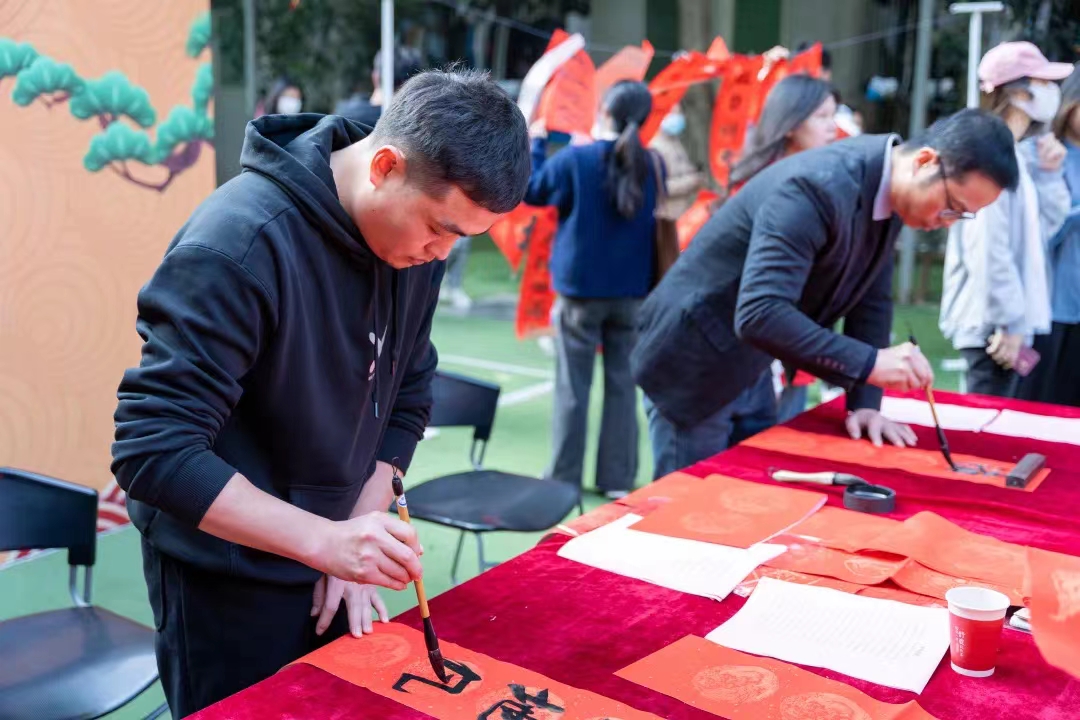 为进一步提升资助育人成效,弘扬中华优秀传统文化,新春佳节来临之际,泉州职业技术大学举行“龙行龘龘 墨香泉大”送春联活动。邀请中国书法家协会、福建省书法家协会的几位书法家和学校师生们一同书写、现场赠送,为泉大师生献上了吉祥喜庆的春联。他们命笔挥毫,一撇一捺之间,将新春祝福深深地融在了一张张联纸上,整个校园瞬间溢满了浓浓的墨香。