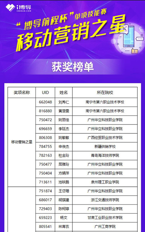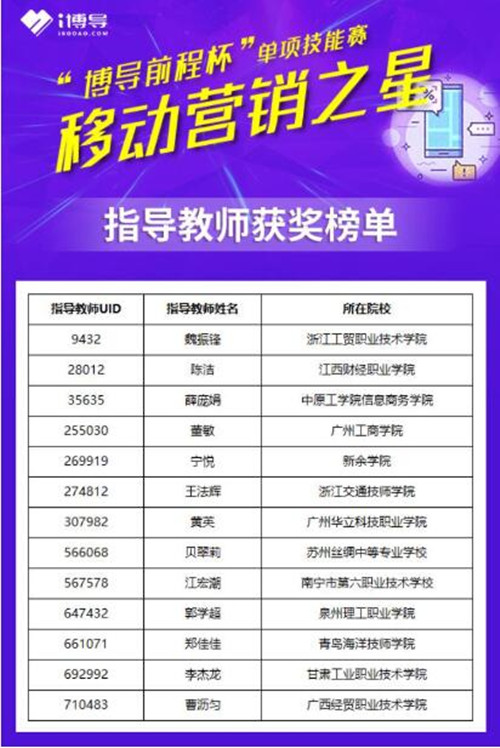 最终池轶鹏同学以全国排名第十的成绩,获“移动营销之星”称号,郭学超老师获“优秀指导老师”称号。