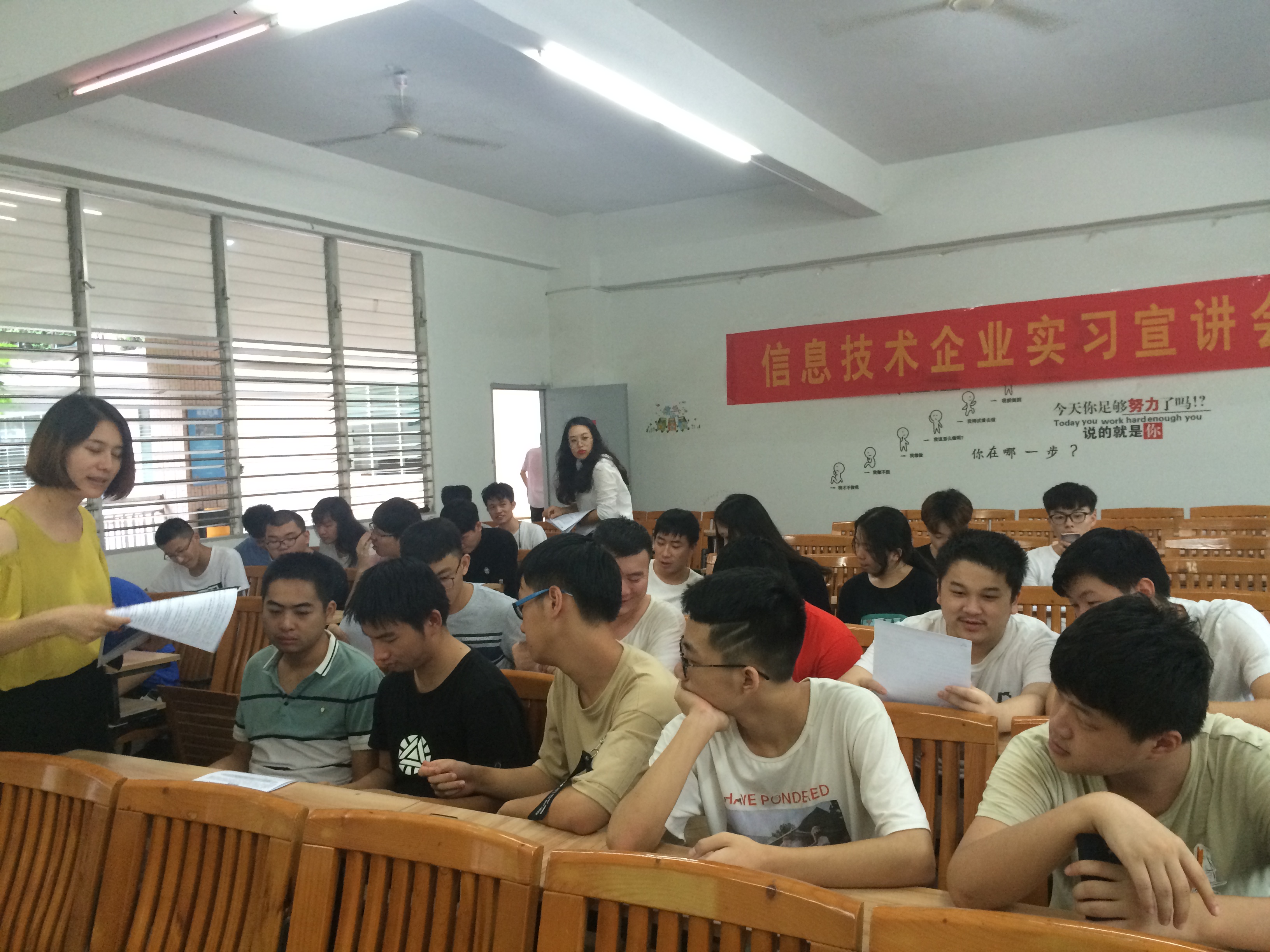 8月1日下午,我系举办了计算机应用技术专业16级学生双选会。此次双选会邀请了福州中联网佳信息技术有限公司、泉州全息信息技术有限公司、泉州卓旻网络科技有限公司等企业参加,涉及软件、物联网工程、通信、IT工程等行业岗位。