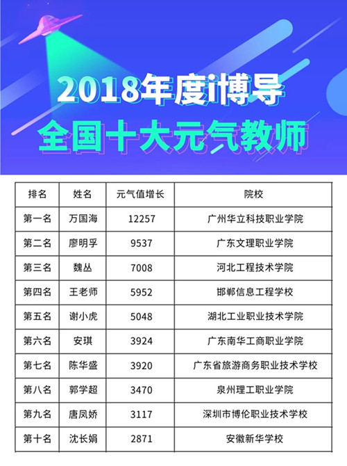 本次共有1802位来自全国教学一线的精英教师参与评选,共决出“2018年度i博导全国十大元气教师”10人、各省市“2018年度i博导省级十大元气教师”70人。