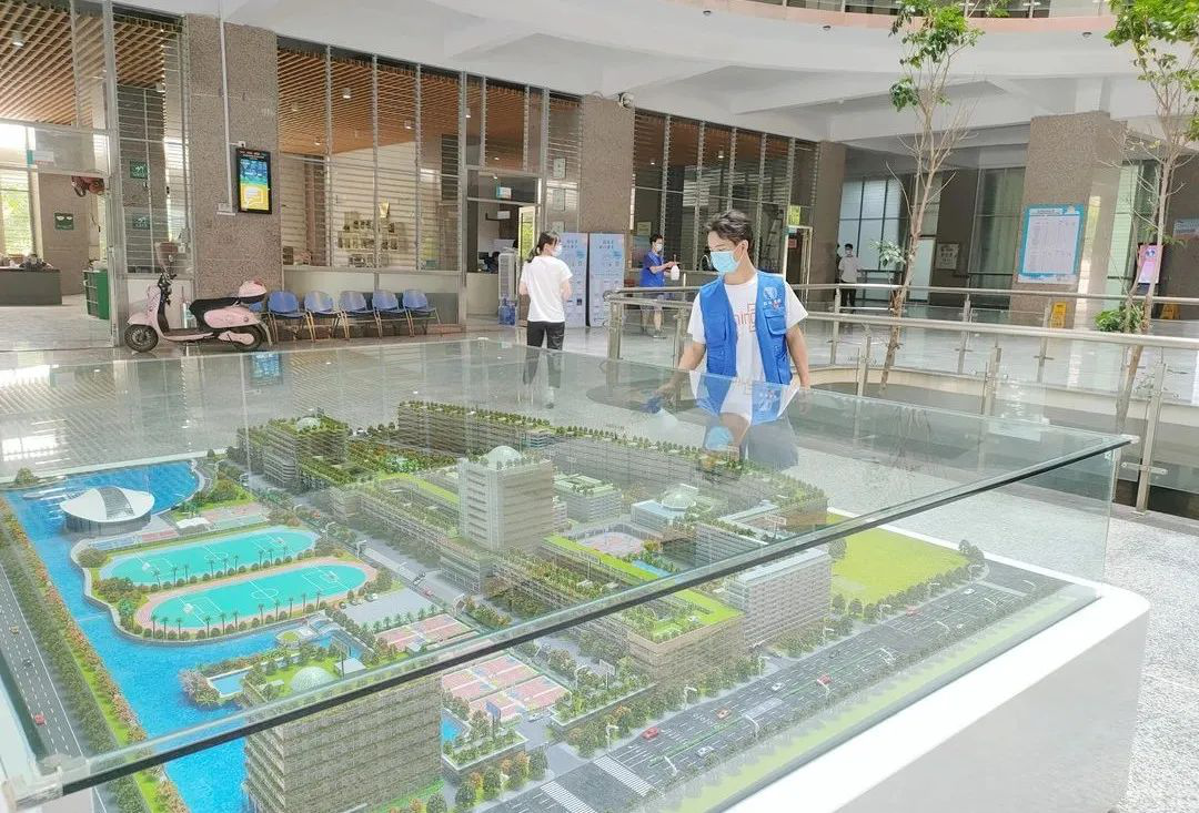 在校党建馆内,化身为“小红人”的志愿者们,强强联动,清洁着党建馆的每一处角落。