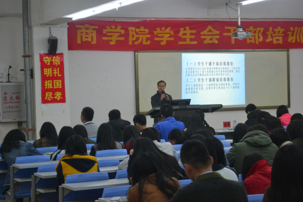 本次培训主要对象是商学院学生主要干部及各班级班长、团支书,培训还邀请商学院党总支副书记陈荣惠、团总支书记游小玲、辅导员陈添贵和谢秋钊老师参加并讲课。
