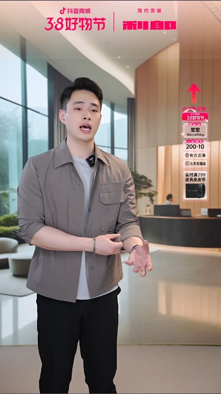 2022年,陈军进入利郎实习,就此踏上主播生涯的舞台。起初,他是一名跟播员,在直播间旁站着,配合主播整理衣服、协助商品讲解、及时跟进粉丝互动、渲染直播间氛围。一场直播结束后,他嗓子都喊哑了,还要跟主播做复盘。下班后,他还要背直播话术、记产品卖点。因为太想上岗,他和舍友连做梦都在直播间喊着,“321,上商品链接”“来,衣服尺码表放出来”“大家好,来,开始上一波礼物”……